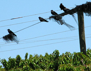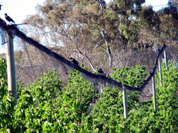 The photo below shows how the cabling in a netting structure has worn away through the nets by the action of the wind. The cherry orchard is now completely exposed to the birds. In addition the net cable throughout the orchard, now acts as a vantage point from which bird’s can pick their mark and launch their attack.