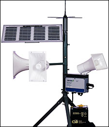 Computer-Managed Natural Sounds Scare Away the Birds When birds enter the protected area, the deterrent module is triggered by radio link from the radar unit. Digital quality deterrent sounds are emitted which produce an immediate effect on the birds, scaring them away from the crop. These sounds are bio-acoustics — natural predator and distress calls.